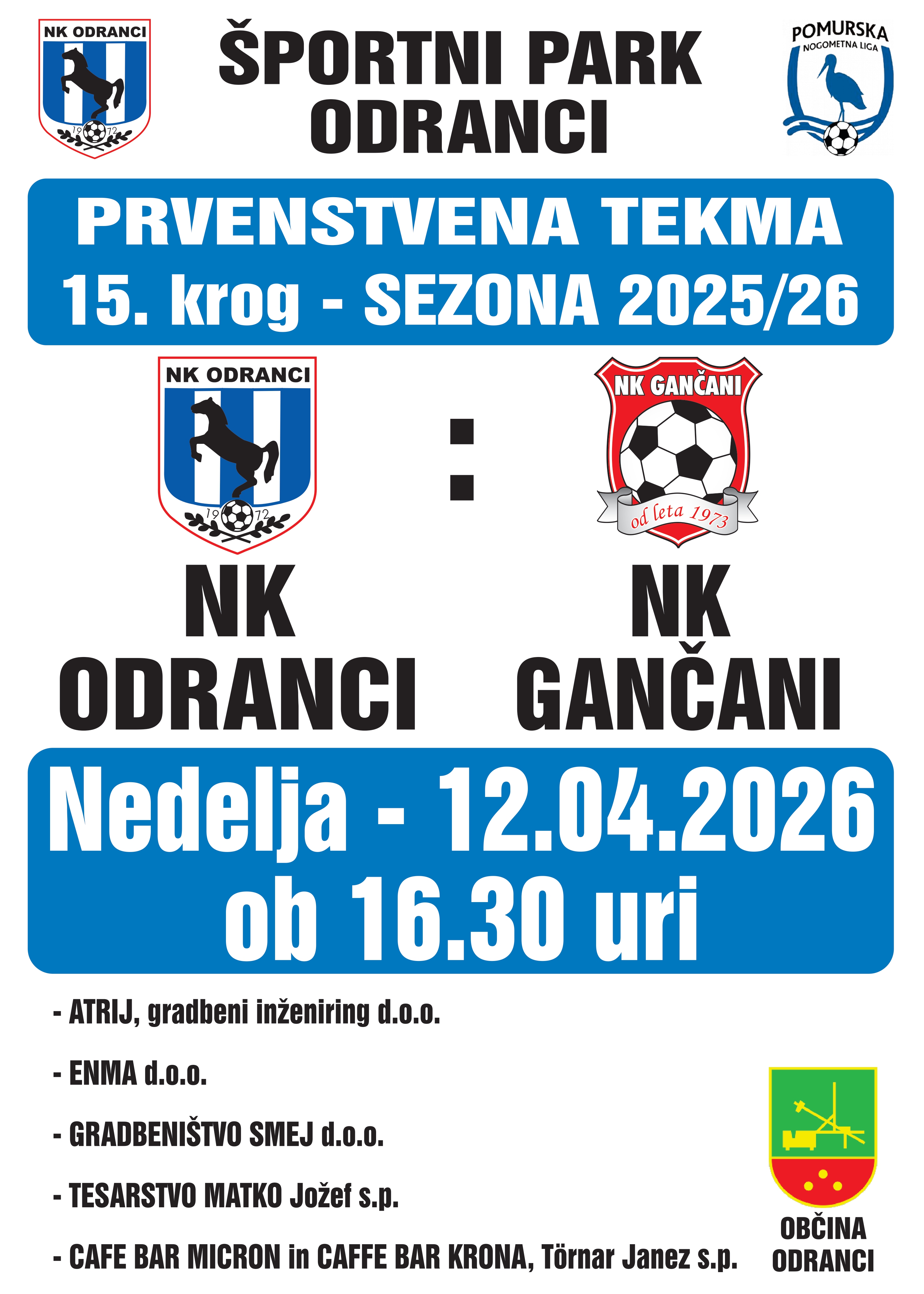 Tokratna nedelja bo rezervirana še za drugo zaporedno tekmo naše članske ekipe na domači zelenici. Po zmagi nad Črenšovci sedaj v ŠRC Odranci prihajajo Gančani. Bo pa obračun 15.kroga PNL zanimiv še zaradi enega dejstva, saj gre za dvoboj trenutno neporaženih ekip v spomladanskem delu prvenstva.